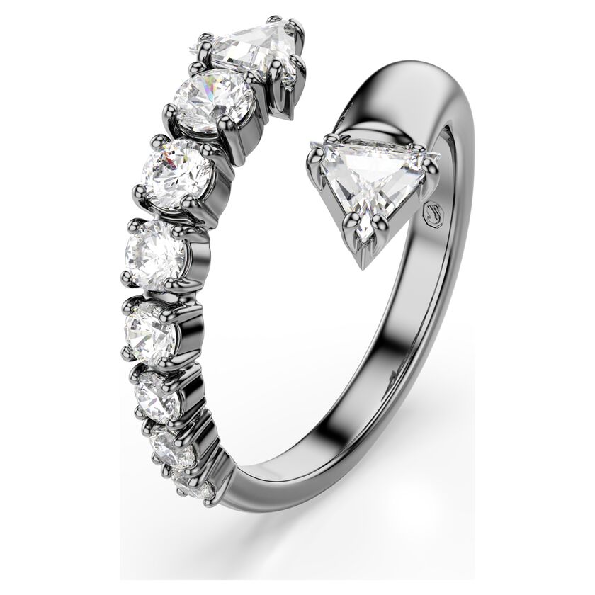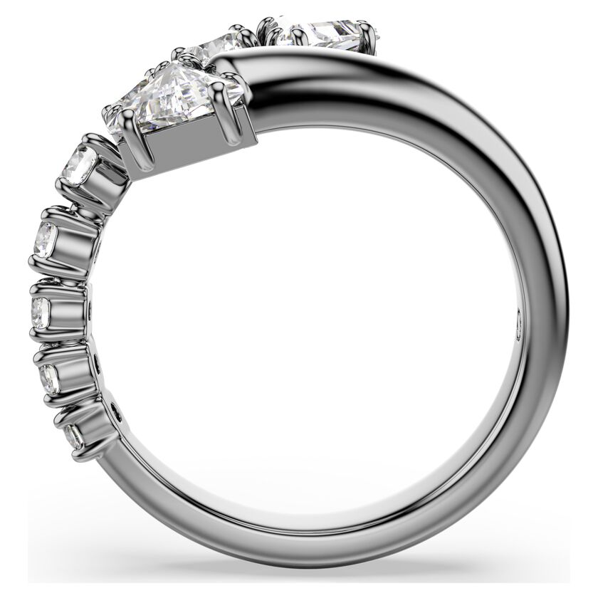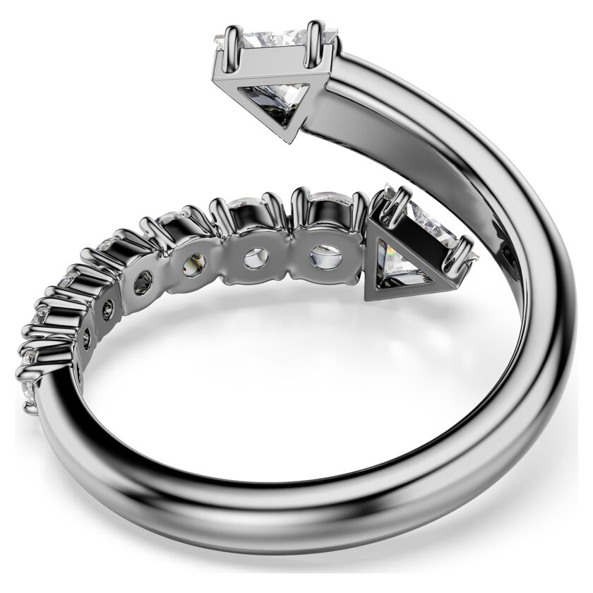 This Sublima ring offers an impactful alternative to everyday styling. The ruthenium plated band is open-ended and spirals around the finger with a variety of clear Swarovski Zirconia in prong settings. The spiky tips add a contemporary finish and match perfectly with other jewelry pieces from the same expressive family.